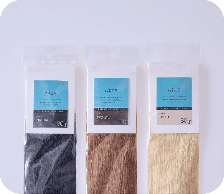 - ブリーチによるトーンアップも可能ですが、あまり推奨は致しません。その場合は一段明るいブラウン等を使用していただく事をお勧めします。ハネエクステを付ける際は髪の毛を綺麗な状態にしてからお願い致します。